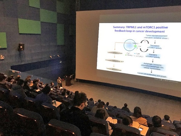 接着董教授以溶酶体和癌症为切入点,向大家介绍了TRPML1下调能抑制乳腺癌(TNBC)细胞的迁移和侵袭能力,靶向抑制TNBC细胞中的TRPML1功能对TNBC肿瘤的生长和转移有显著的影响,TRPML1可能作为疾病治疗的潜在靶点。