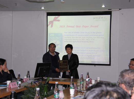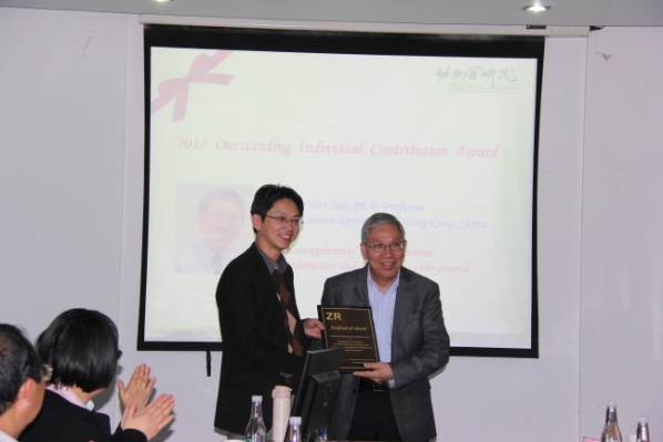 2018年度,ZR共评选“突出个人贡献奖”1项、“最佳论文奖”/1项、“优秀论文奖”2项、 “优秀个人贡献奖”若干。姚永刚主编和郑永唐副主编等向获奖者表示祝贺并颁发了证书。