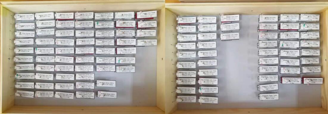 近日,云南大学高建军副研究员及博士后加藤雄大向昆明动物博物馆昆虫标本库赠送了他及合作者近期发表的17个果蝇新物种共计88号模式标本,其中正模16号,副模72号。此外,还赠送了21号果蝇非模式标本。这批标本的入库丰富了昆明动物博物馆模式标本的收藏。