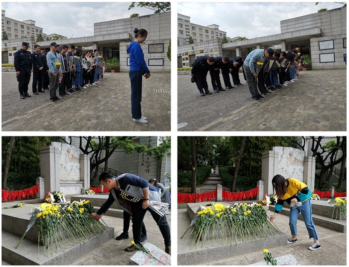 4月5日,参加活动的同学手捧菊花,怀着对革命先烈们无比的崇敬和无限哀思,从研究所步行来到国立西南联合大学旧址。“一二一”运动纪念馆讲解员详细地为同学们介绍了“一二一”事件、以及李公朴、闻一多等众多烈士在云南参加革命运动的爱国事件。在烈士墓前,同学们进一步了解了纪念碑上的浮雕内容和纪念碑上的烈士,使同学们更加深入的了解了那一段历史。之后,讲解员带领大家举行了简短而又隆重的悼念仪式,大家集体默哀三分钟并深深鞠躬,向烈士们致以沉痛的哀思,随后大家有序的向烈士们敬献菊花。