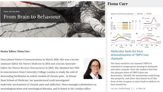 资深编辑Fiona Carr以Molecular basis for heat desensitization of TRPV1 ion channels为题正面评论了该工作,并将其收录入“From Bain to Behavior”亮点工作专题中。