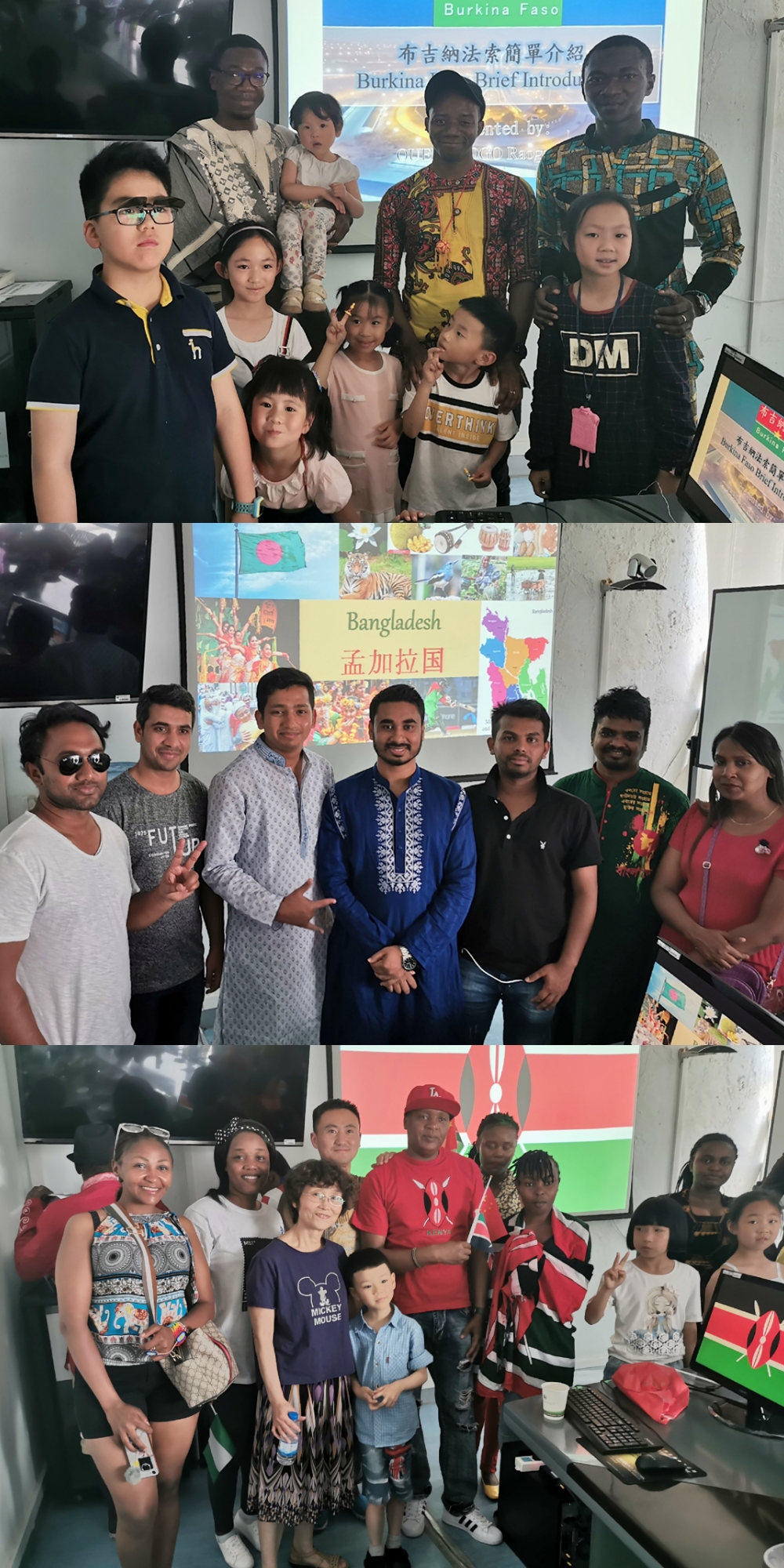 本次异域文化之旅活动分为3场。来自非洲国家布基纳法索的同学们展示了该国的特色文化和服饰,三位男生还应在场观众的要求,为大家表演了助兴舞蹈,他们随着韵律扭动身体,让大家领略到了别样的非洲风情;肯尼亚共和国的同学们为大家带来了壮观的非洲野生动物大迁徙图片展,同时还分享了肯尼亚特色美食SAMOSA、CHAPATI,他们的中文讲解和可口的食物获得了不少赞许;来自孟加拉国的同学为大家讲述了孟加拉的独立史,还给大家介绍了孟加拉虎的现状及保护情况,呼吁大家为保护动物和生态环境贡献自己的一份力量,他们也拿出了准备好的孟加拉美食与在场观众分享。