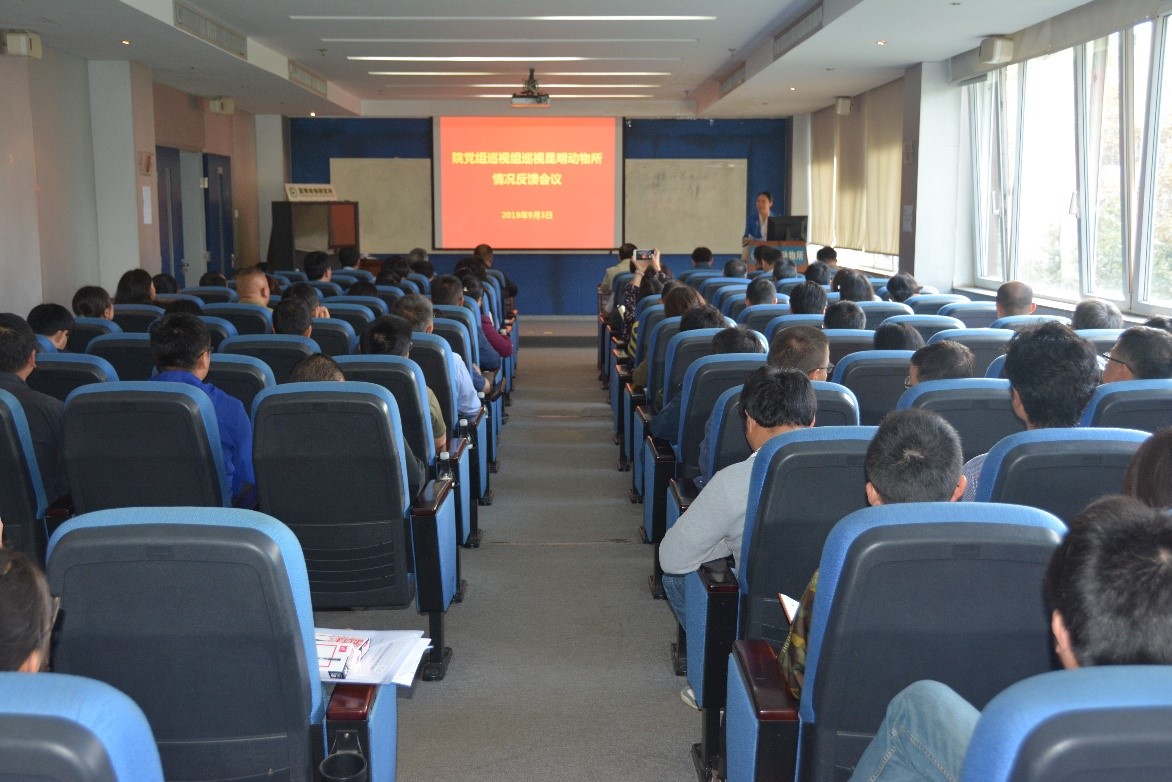 中科院直属机关党委、巡视办、巡视组和昆明分院相关负责人,昆明动物所领导班子成员,党委委员,纪委委员,管理与支撑部门负责人,重点实验室负责人,学科组长,党支部书记,职代会、工会、团委、妇委会、研究生会、老年之家等群团组织的负责人,副高及以上职称人员等100余人参加会议。