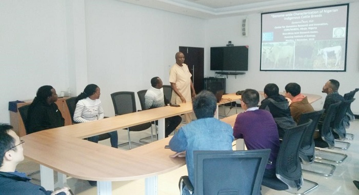 2019年11月4日,应分子进化与基因组多样性学科组邀请,尼日利亚国家生物技术发展署,遗传学、基因组学和生物信息学部主任Oyekanmi Nashiru教授应邀来昆明动物所做题名为“Genome-Wide Characterization of Nigerian Indigenous Cattle Breeds”的精彩学术报告。