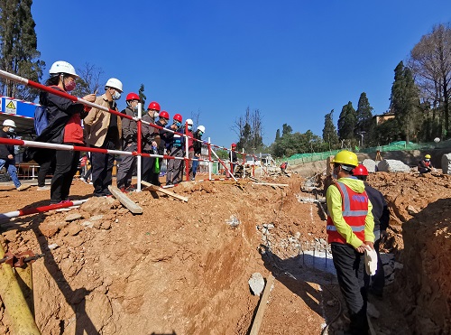 李心祥副所长向省质监站专家介绍了研究所和灵长类设施的概况,施工单位项目经理杨立东和监理单位项目总监熊作海介绍了项目的施工进展情况。省质监站专家就项目施工现场情况提出了意见和建议,同时对复工后的疫情防控做出了要求。
