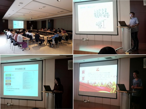 之后,第一党小组组长顾春节作了“当代科学工作者的家国使命”学习交流报告。她结合所在党小组的学习心得和自身理解,通过一个个例子,给大家讲解了科研工作者的文化自信和家国使命。第六党小组组长刘前进作了“疫情下的党员担当”学习交流报告,强调党员同志在疫情防控战场上要做好先锋模范带头作用。
