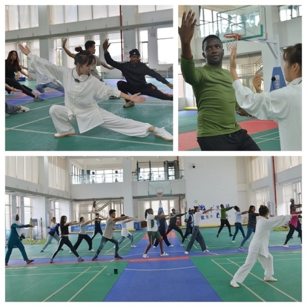 中文教师以视频导入的方式直观地展示了中国传统阴阳哲学,结合已学过的汉语词句,介绍了阴阳平衡思想在中国人生活中各方面的体现,让留学生进一步理解阴阳哲学的内涵,而后引出包含阴阳哲学思想的中国传统武术——太极拳。按照体验式教学的方式,专题语言课堂教学后,武术老师组织学生开展太极拳体验学习。老师带领同学们热身并对杨氏太极拳进行简要介绍后,从起式开始教大家学习太极拳的基本动作。老师教学耐心细致,不时为大家纠正动作、讲解要领,同学们积极参与,认真学习,热情高涨,在轻松愉快的氛围中感受了中国武术,也领略了太极拳中蕴含的中国优秀传统文化。活动结束后大家意犹未尽,期待着下一次的文化体验活动。