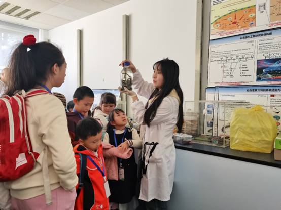 在参观有毒动物与动物毒素科研成果展示区和“有毒动物科研成果转化”科普讲堂环节中,该课题组的陈璐瑶从什么是有毒动物、有毒动物的危害、“致命毒药”VS“救命解药”、生命科学研究的成果转化、有毒动物的防毒秘籍、有毒动物与神经精神性疾病关联性的研究展望等内容,让学生们了解有毒动物的科研成果,认识动物毒素对人体的影响,以及动物毒素的实际应用案例;在实验室里,学生们在安全范围内观察有毒动物,认识不同类别的有毒动物展品,识别有毒动物特征及毒素分泌器官;在有毒动物模型标本制作环节,在高级工程师罗文寿的指导下,学习制作熊蜂的模型标本,亲子协作耐心细致地进行打磨和上色,制作出一个个栩栩如生的雄蜂仿真模型,提升了对有毒动物特征的认知;在观察写作培训环节,在工程师孙羽的指导下,学习了怎么记录观察报告,每个人都认真地把学习过程和收获感谢记录在探究笔记中。