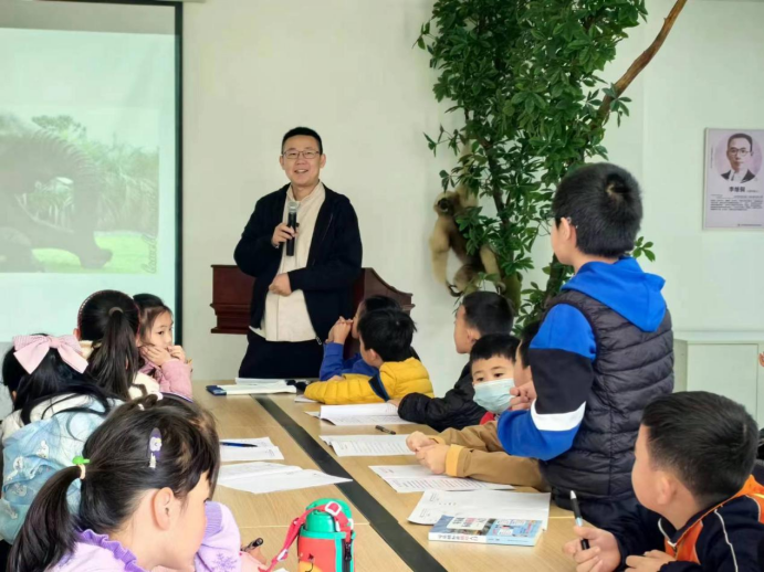本次课程以揭秘基因密码为主题,昆明动物所研究员吴东东作《科学家为什么要研究动物》科普讲座,他从动物资源挖掘与利用、动物与仿生、动物与我们的衣食住行三个部分展开,结合当前动物科学领域最新科研成果,用生动有趣的语言为孩子们揭秘科学家研究动物的初衷和该领域的探索方向,让孩子们对科学研究有了更深入的了解。高级工程师杨劲松则带领孩子们在昆明动物博物馆里寻找那些动物界的奇妙基因,一起寻找大象为什么不容易得癌症、蛇为什么没有脚、古DNA提取成功是否能复活古生物等问题的答案,以此印发孩子们思考,进而介绍了基因的作用。