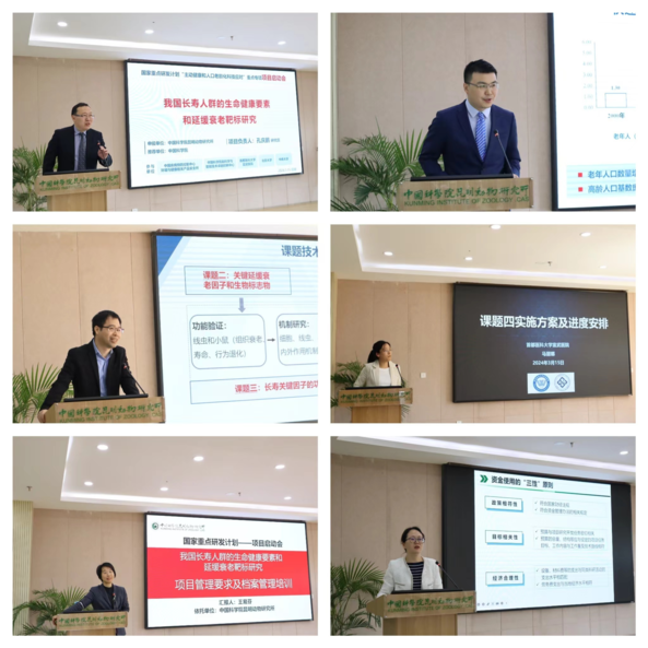 会议内容分为3个部分,第一部分由E乐彩科研发展部部长王易芬主持,副所长毛炳宇代表项目依托单位致欢迎辞。国家卫生健康委医药卫生科技发展研究中心处长赵凯利处长对项目的实施管理提出了具体要求。她强调项目承担单位和课题承担单位一定要履行好法人责任,全方位做好项目的管理和保障服务工作;并希望在专家组的指导下项目各参与单位能够加强沟通,信息共享,互助共进,开展多学科融合,协同创新联合攻关,取得突破性高水平研究成果。云南省科学技术厅社发处副处长于宁肯定了项目在抗衰老赛道的立项意义重大,希望项目为云南的生物医药产业注入新的动能。