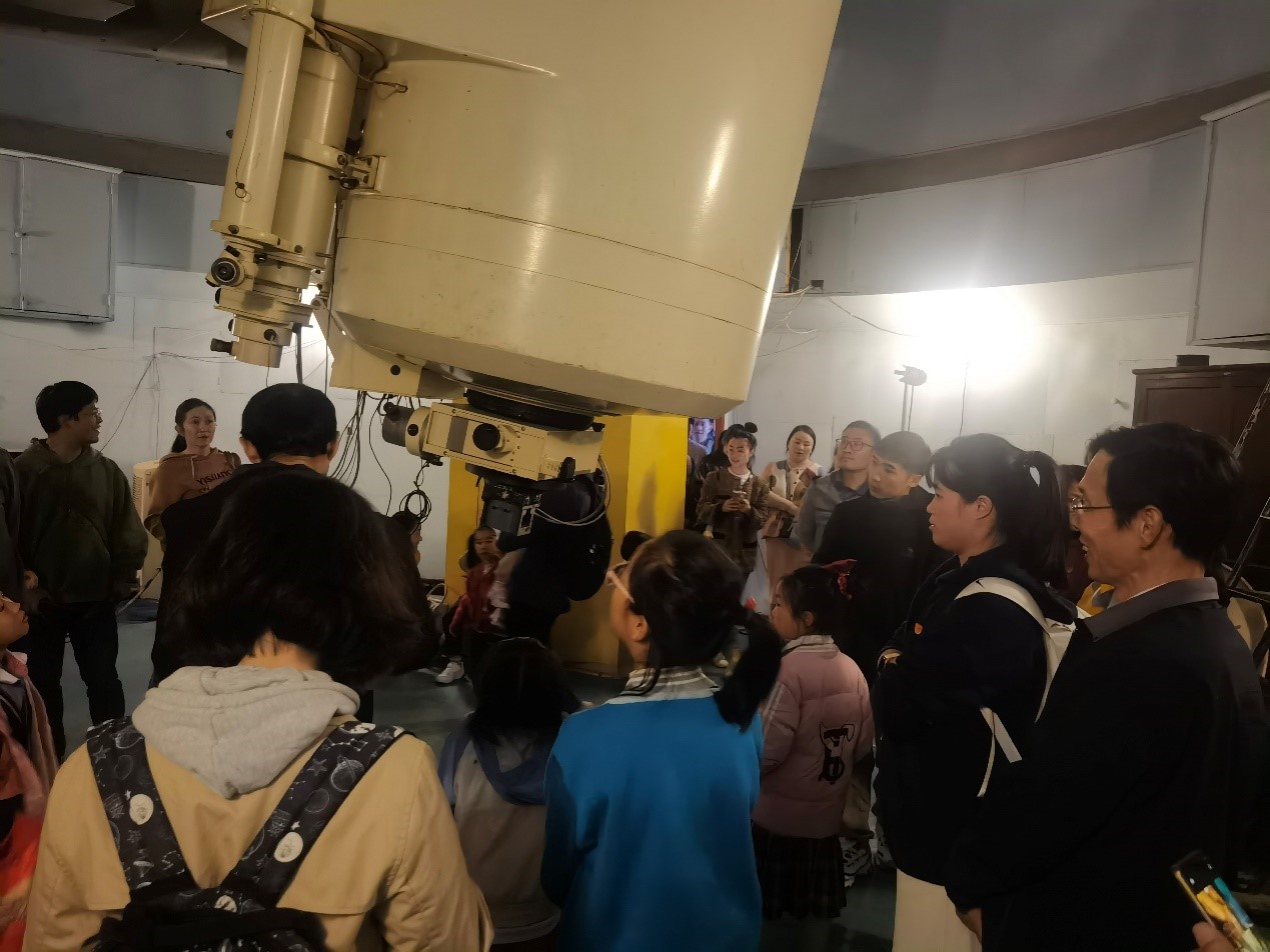 全体人员依次参观了用于承担探月工程地面数据接收任务的国产40米射电望远镜、1米光学望远镜、天象馆、陨石展厅等,并用40厘米天文望远镜观测月亮表面的环形山。党员们认真聆听讲解员的介绍,深入学习天文知识,了解观测设备如何高效运行,为天文研究提供了有力的数据支撑。