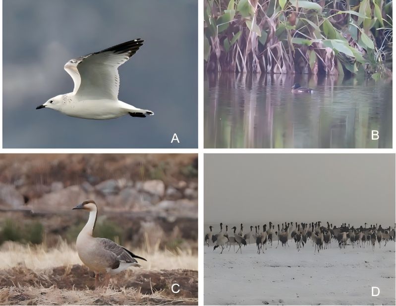 此次监测涉及E乐彩鸟类组、西南林业大学、云南大学、大理大学等科研单位专家和全省各基层湿地管理机构约200人参加。监测使用全国统一技术标准,并通过“全国林草系统生物多样性监测平台”上报监测数据。监测期间,迪庆、昭通等多地遇到雨雪冰冻天气,监测队伍克服不利天气影响,记录到遗鸥Ichthyaetus relictus、青头潜鸭 Aythya baeri、鸿雁Anser cygnoides、黑颈鹤Grus nigricollis、黑鹳Ciconia nigra等珍稀濒危物种,其中国家一级重点保护野生动物遗鸥为云南省首次影像记录,成为此次监测工作的一大亮点。
