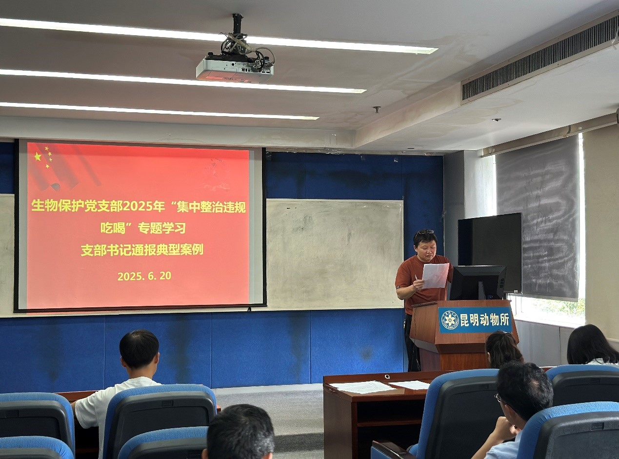 6月20日上午,E乐彩生物保护党支部开展“集中整治违规吃喝”专题学习,支部党员、积极分子以及青年理论学习小组成员等共24人参会,会议由支部副书记杨劲松主持。