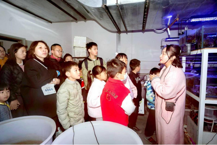 活动进入了最受期待的实践环节。学生和家长们在科研人员的带领下,了解了洞穴鱼类发育与进化研究组的研究方向,亲手参与了盐水虾的制作过程,并体验了投喂洞穴鱼的乐趣。这一实践环节不仅增强了学员们的动手能力,也让他们更加深入地理解了洞穴鱼类的食性特点和生存需求。这种近距离接触前沿科研环境的机会,让学生们了解洞穴鱼独特的生理特征和行为习性,对科学研究有了更加直观的认识。