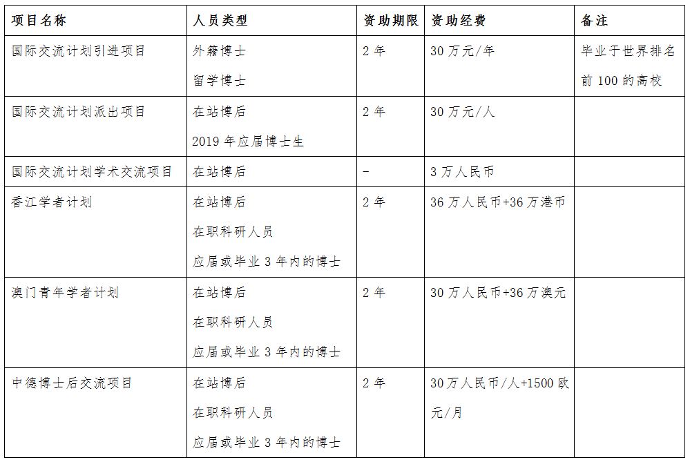 2019年,全国博士后管委会办公室计划开展博士后国际交流计划(引进项目、派出项目、学术交流项目)、香江学者计划、澳门青年学者计划、中德博士后交流项目等博士后国(境)外交流项目。具体申报工作安排详见附件申报指南。现将相关组织申报工作要求通知如下: