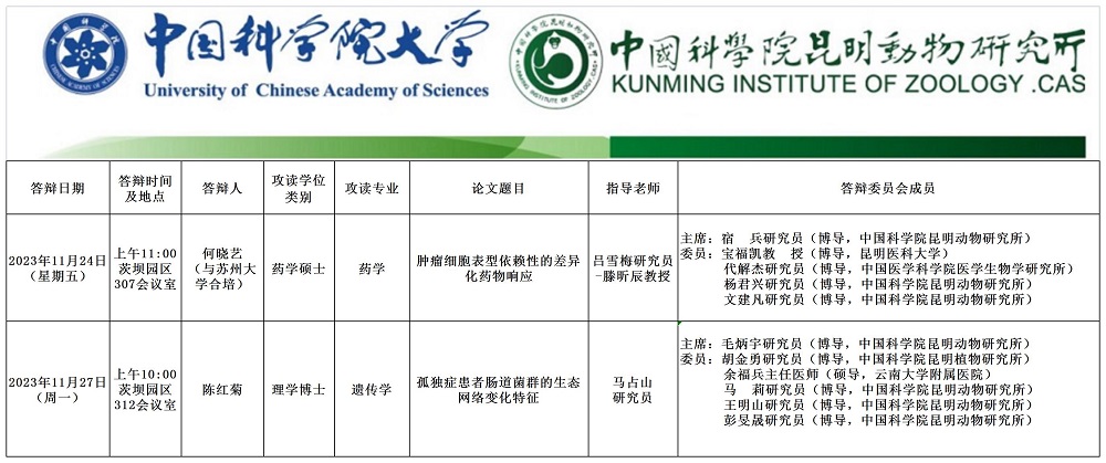 研究生学位论文答辩公告(2023年11月24日和27日)