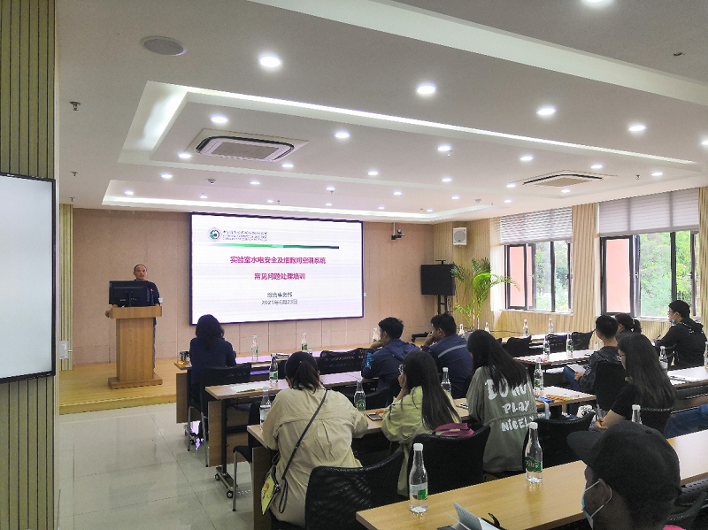 实验室兼职安全管理员、新入所师生共计40余人参加了本次培训。后勤服务中心主任陈爱华主持了本次培训。