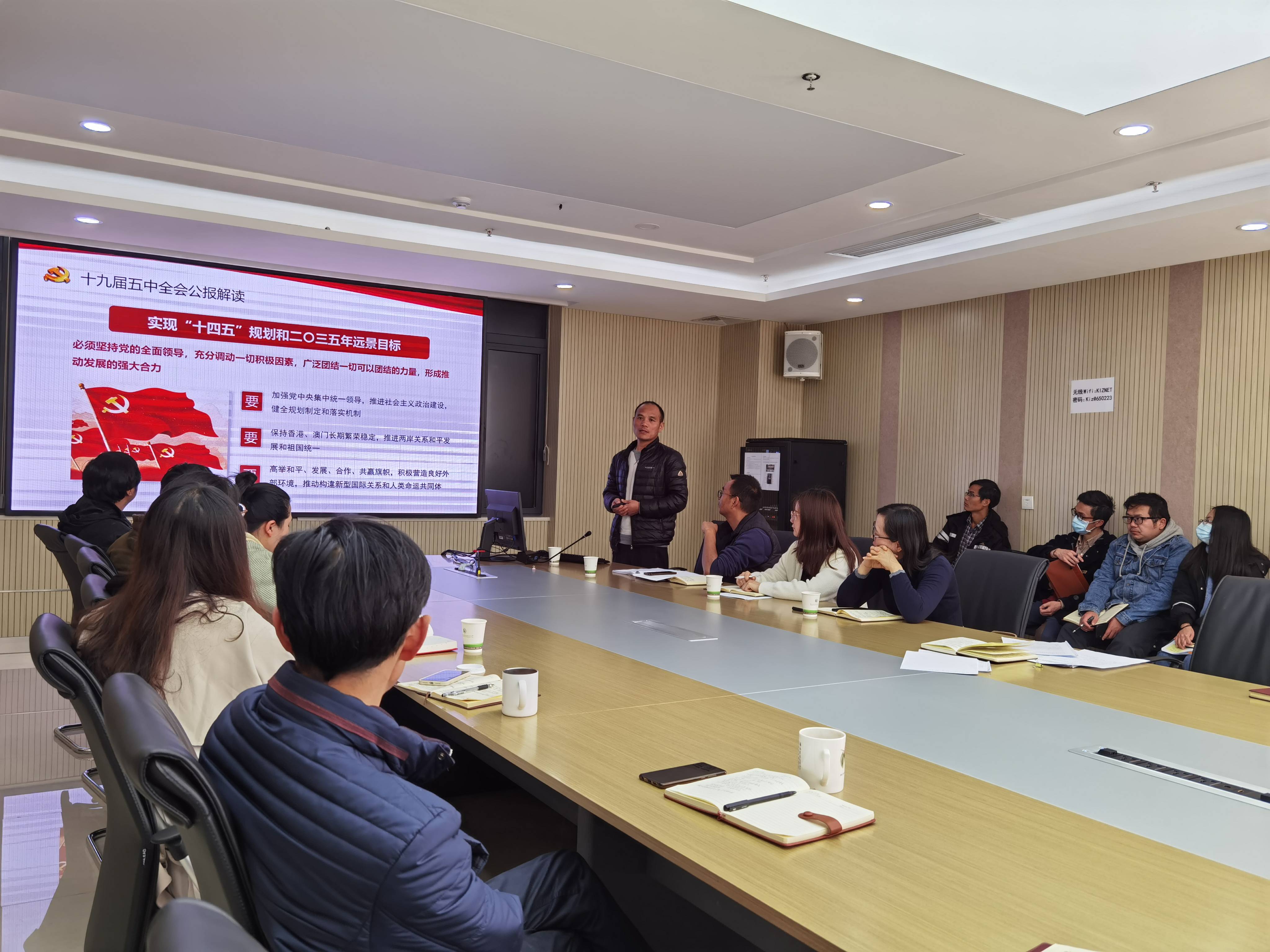 会上,李心祥组织大家观看了《中国共产党十九届中央委员会第五次全体会议公报》视频。并传达学习了党委理论学习中心组学习扩大会议精神,他带领大家一起学习了国家“一五”计划五易其稿的诞生历程、取得成效和重要经验。介绍了党的十九届五中全会概况,并对十九届五中全会公报进行了解读。重点强调了十九届五中全会中关于科技创新的论述,以及研究所“十四五”期间努力的方向。