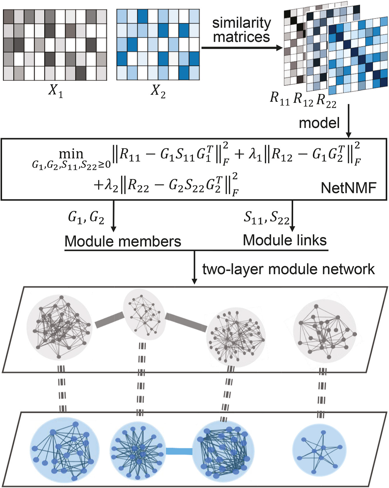 中科院动物进化与遗传前沿交叉卓越创新中心张世华研究团队组提出了基于多对称矩阵分解的数据整合数学模型和算法,通过整合多类型关系数据,巧妙地将多类分子特征关联起来。这个模型的优势在于不仅能够识别出具有特定生物功能的分子模块,而且能够同时发现同一类或不同类模块之间的关联。最终,可以构造一个多层的模块网络,系统地展现不同功能单元之间是如何协同工作的。该成果发表于Nucleic Acids Research,审稿认为:“The proposed method is of great interest to…”; “The paper is well-organized, and the method is novel.”