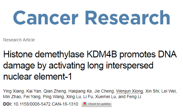 高等生物基因组中存在一类可以“跳跃”的重复序列,在漫长的历史演变中扩增或者改变位置,对于基因组的进化起到了重要的作用,这种序列称为转座子(transposons)。其中有一类RNA 转座子,又称为逆转录转座子(retrotransposons) , 是以 RNA 为媒介进行转座的,其复制方式通常被形容为“复制-粘贴”模式,即首先通过转录合成 RNA 中间体,再以该 RNA 为模板逆转录合成 DNA 整合入基因组其他位置。近年的研究表明,逆转录转座子在肿瘤组织中拷贝数增加,而且更活跃,但是其调控机制和生物学功能还不是很清楚。 近日,武汉大学李枫课题组和中国科学院北京基因组研究所的吕雪梅课题组联合在Cancer Research在线发表题为Histone demethylase KDM4B promotes DNA damage by activating long interspersed nuclear element-1的研究成果,该研究首次揭示了组蛋白去甲基化酶对逆转录转座子的调控,并与基因组不稳定联系起来,从全新的角度解释了KDM4B在肿瘤细胞中高表达的致病分子机理。组蛋白去甲基化酶KDM4B能催化H3K9me3的去甲基化反应, 通过系统性的分析H3K9me3在全基因组元件中的分布,结果显示很大部分富集在逆转座子LINE-1 (long interspersed nuclear element-1)元件,而受KDM4B调控的H3K9me3主要分布在进化上年轻的活跃LINE-1上。进一步研究发现,过表达KDM4B通过对H3K9me3的去甲基化会导致LINE-1拷贝数、转座活性和DNA损伤程度增加。有趣的是,KDM4B抑制剂的使用抑制了LINE-1介导的DNA损伤。该研究揭示了KDM4B在肿瘤中所扮演的新角色,并为肿瘤的预防和靶向治疗提供了线索。